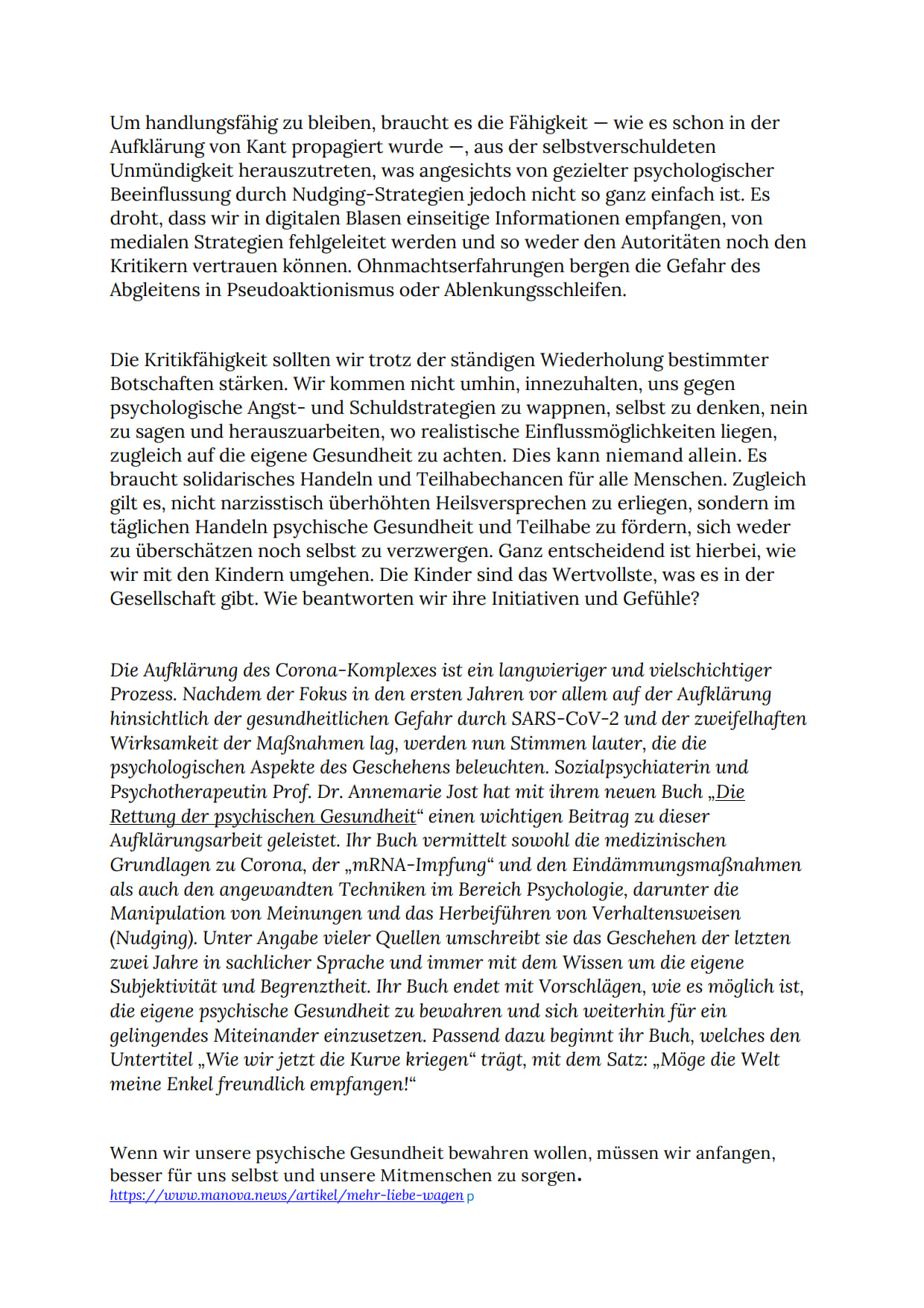„Die Angstpandemie war schlimmer als die C-Pandemie, um es auf den Punkt zu brigen. […] Was wir heute erleben ist eine Art kolonialisierung des Leibes“ – Dr. med. Ellis Huber