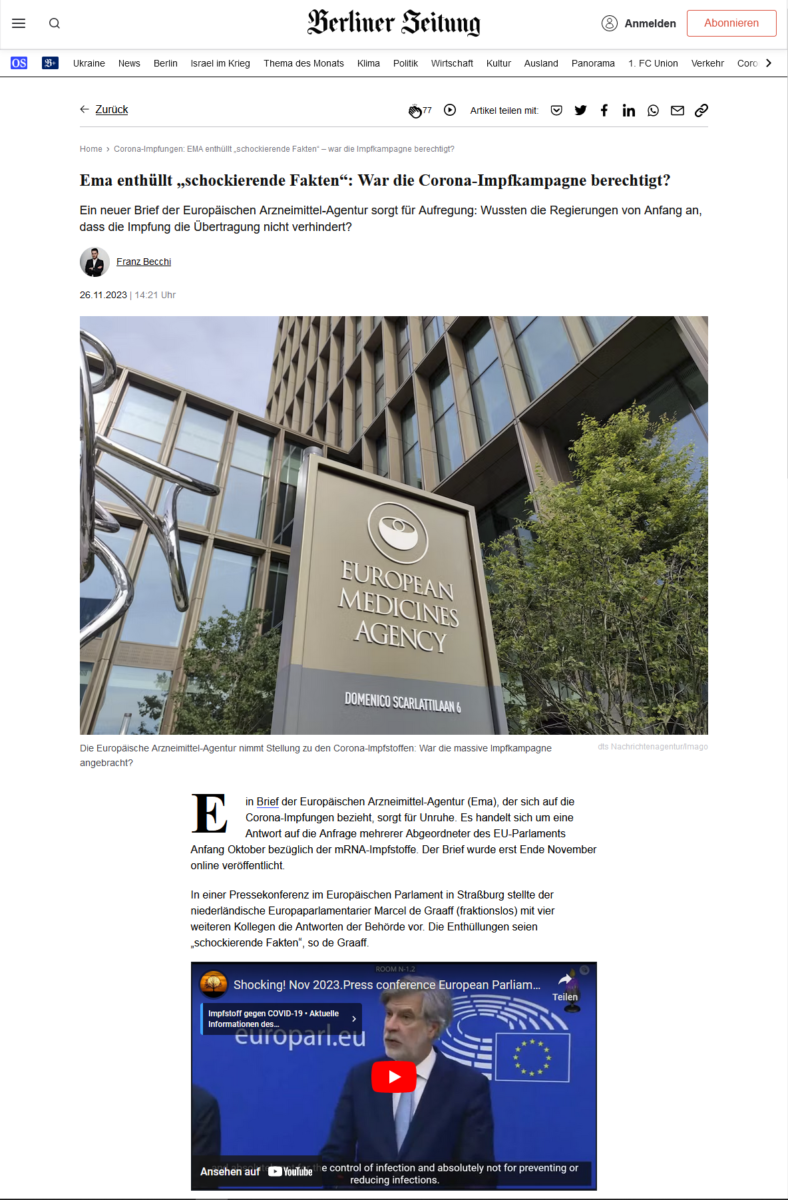 Offiziell ist nun soweit klar, das laut der EMA (auf Nachfrage) die Zulassung nicht darauf ausgerichtet war, die Infektionsübertragung in der Gesamtbevölkerung zu kontrollieren. – Lies bitte diesen Satz ggf. noch mal! Siehe z.B. hier.