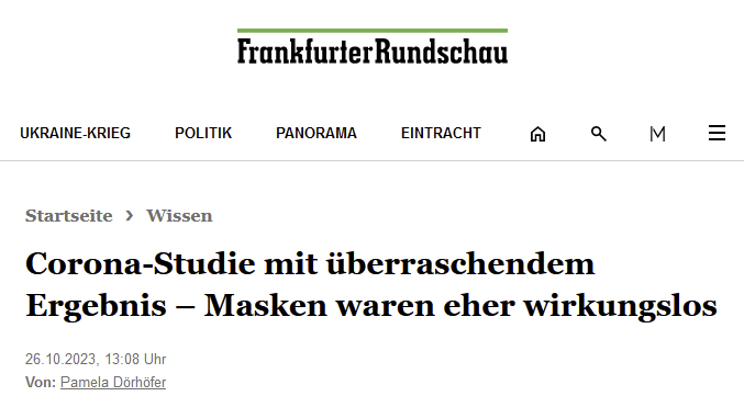 „Frankfurt – Das Tragen von Masken hat laut einer Meta-Studie auf das Infektionsgeschehen in der Bevölkerung während der Corona-Pandemie wahrscheinlich nur einen geringen oder möglicherweise überhaupt keinen Einfluss genommen.