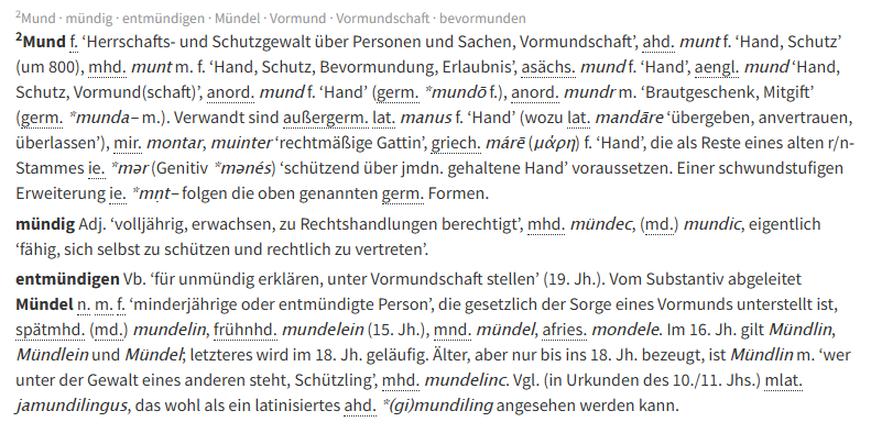 mündig‚, ein recht zentraler Begriff. Anbei die Etymologische (herrkünftliche) Einfassung