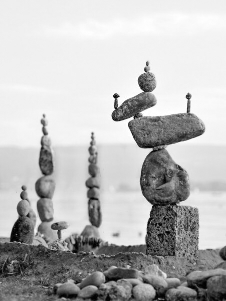 Wie viel ‚Zeit‘ (Momente, Weile) hast Du dir genommen gegeben um die „Balance der Steine“ im Bild, versuchen nachzufühlen? Dieses Gleichgewicht zu vernehmen – dem mal gewahr zu Sein (in dem fühlbaren Moment-um‘ etwas tiefer einzutauchen)? Wie fühlt sich das für Dich an? Mir zeigt es auf, wie umfänglich und klar mein momentane Wahrnehmungsintensität gerade ist. Mal tiefer, mit einem größerem Radius an in mir vorhanden Wahrnehmbarem. Ja und dann auch mal wieder flach, weniger berührend, etwas unbedeutender erscheint mir das Bild.