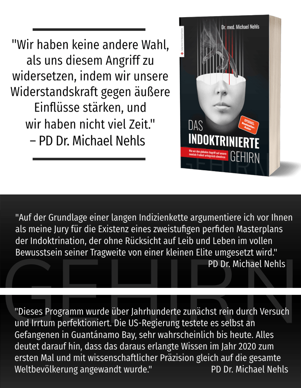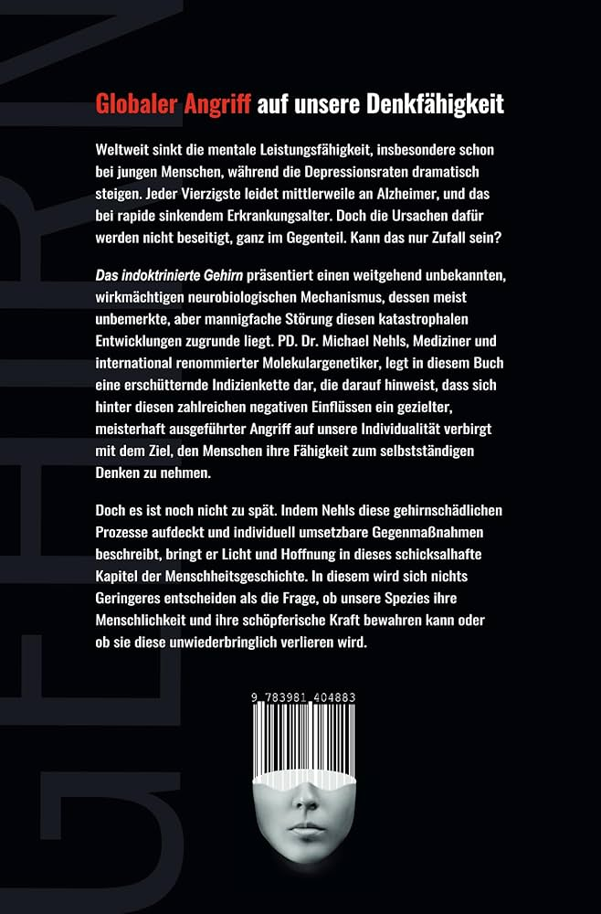 Weltweit sinkt die mentale Leistungsfähigkeit, insbesondere schon bei jungen Menschen, während die Depressionsraten dramatisch steigen. Jeder Vierzigste leidet mittlerweile an Alzheimer, und das bei rapide sinkendem Erkrankungsalter. Doch die Ursachen dafür werden nicht beseitigt, ganz im Gegenteil. Kann das nur Zufall sein? Das indoktrinierte Gehirn präsentiert einen weitgehend unbekannten, wirkmächtigen neurobiologischen Mechanismus, dessen meist unbemerkte, aber mannigfache Störung diesen katastrophalen Entwicklungen zugrunde liegt. PD. Dr. Michael Nehls, Mediziner und international renommierter Molekulargenetiker, legt in diesem Buch eine erschütternde Indizienkette dar, die darauf hinweist, dass sich hinter diesen zahlreichen negativen Einflüssen ein gezielter, meisterhaft ausgeführter Angriff auf unsere Individualität verbirgt, mit dem Ziel, den Menschen ihre Fähigkeit zum selbstständigen Denken zu nehmen. Doch es ist noch nicht zu spät. Indem Nehls diese gehirnschädlichen Prozesse aufdeckt und individuell umsetzbare Gegenmaßnahmen beschreibt, bringt er Licht und Hoffnung in dieses schicksalhafte Kapitel der Menschheitsgeschichte. In diesem wird sich nichts Geringeres entscheiden als die Frage, ob unsere Spezies ihre Menschlichkeit und ihre schöpferische Kraft bewahren kann oder ob sie diese unwiederbringlich verlieren wird.